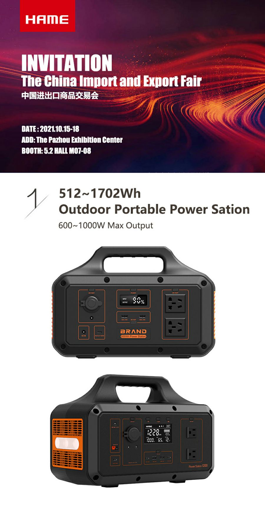 米乐登陆入口-米乐online(中国)携户外储能电源和MagSafe移动电源出席第130届广交会线下展览,展台位于广交会展览馆A区5号馆5.2 M07~08,欢迎莅临。